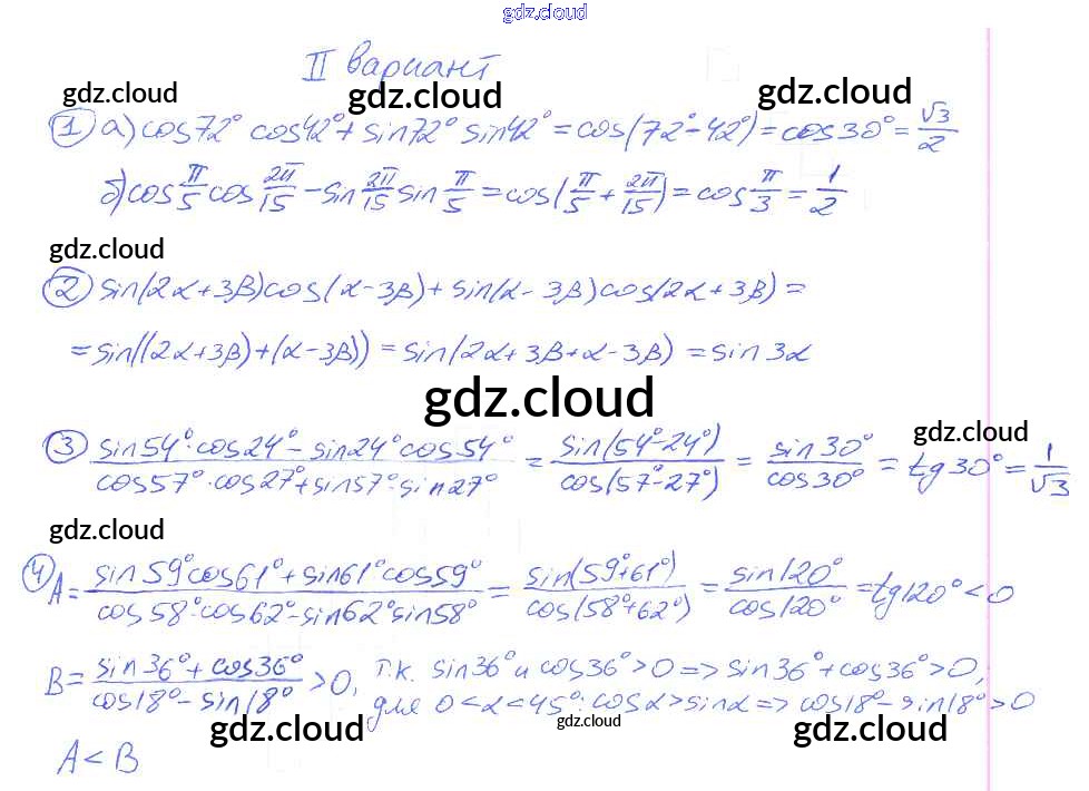 СР №26. Косинус суммы и косинус разности двух углов. Синус суммы и синус разности двух углов Самостоятельные работы по Алгебре 9 класс Дидактические материалы Потапов МГУ - школе Просвещение
