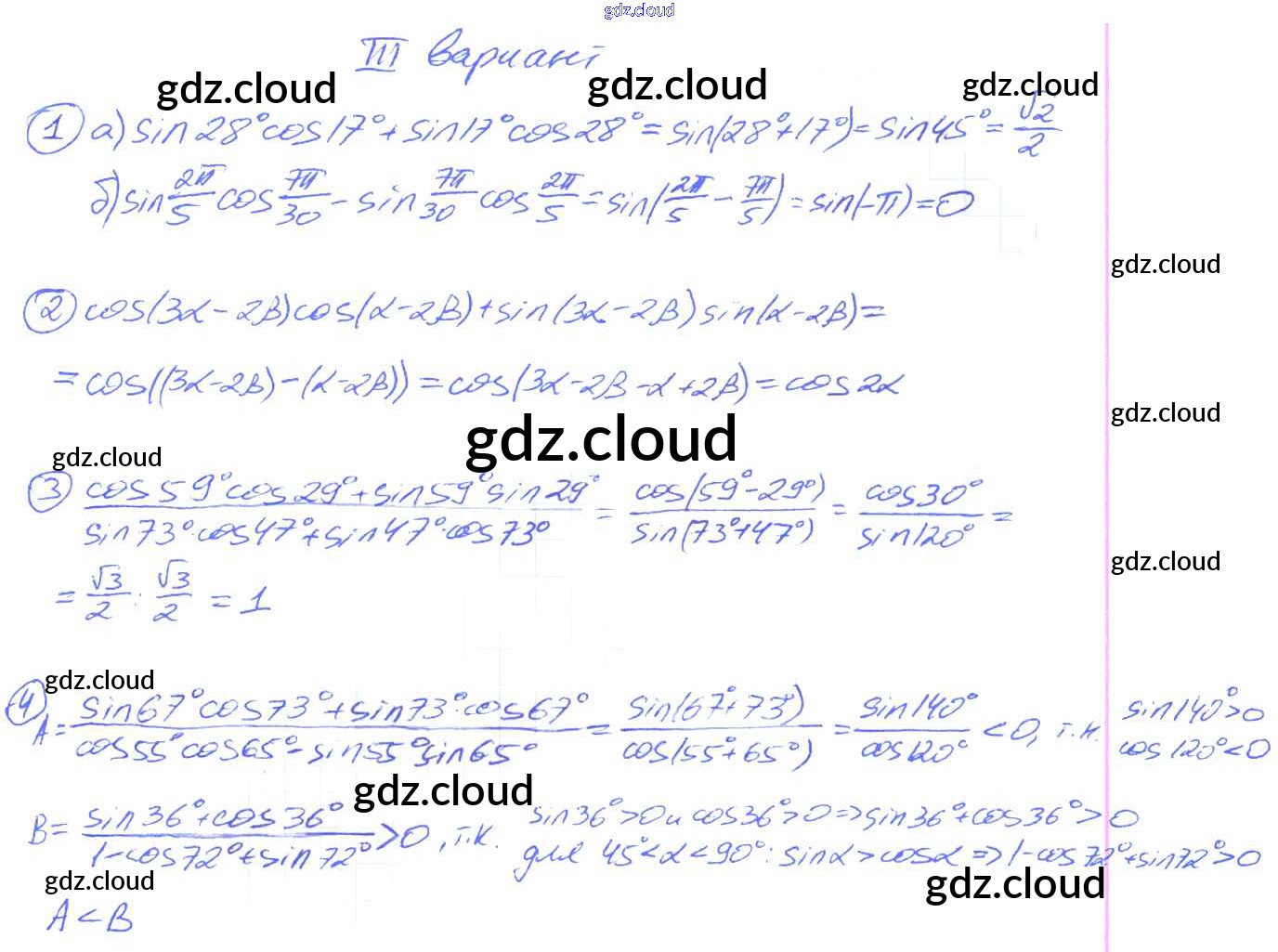 СР №26. Косинус суммы и косинус разности двух углов. Синус суммы и синус разности двух углов Самостоятельные работы по Алгебре 9 класс Дидактические материалы Потапов МГУ - школе Просвещение