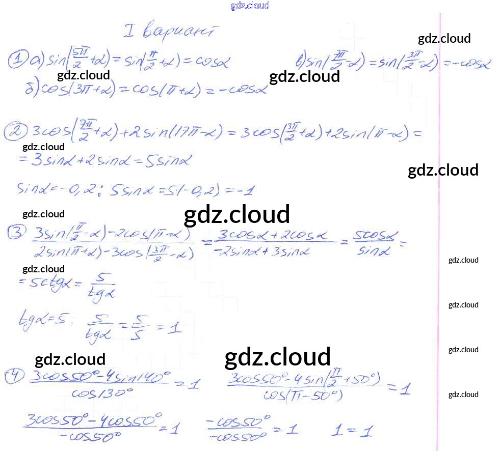 СР №27. Формулы приведения для синуса и косинуса Самостоятельные работы по Алгебре 9 класс Дидактические материалы Потапов МГУ - школе Просвещение