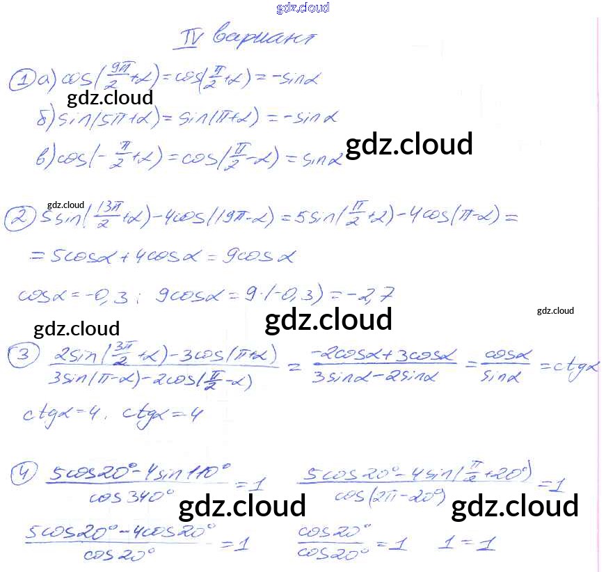 СР №27. Формулы приведения для синуса и косинуса Самостоятельные работы по Алгебре 9 класс Дидактические материалы Потапов МГУ - школе Просвещение