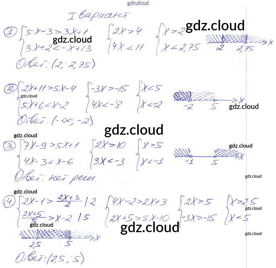 СР №3. Системы линейных неравенств с одним неизвестным Самостоятельные работы по Алгебре 9 класс Дидактические материалы Потапов МГУ - школе Просвещение