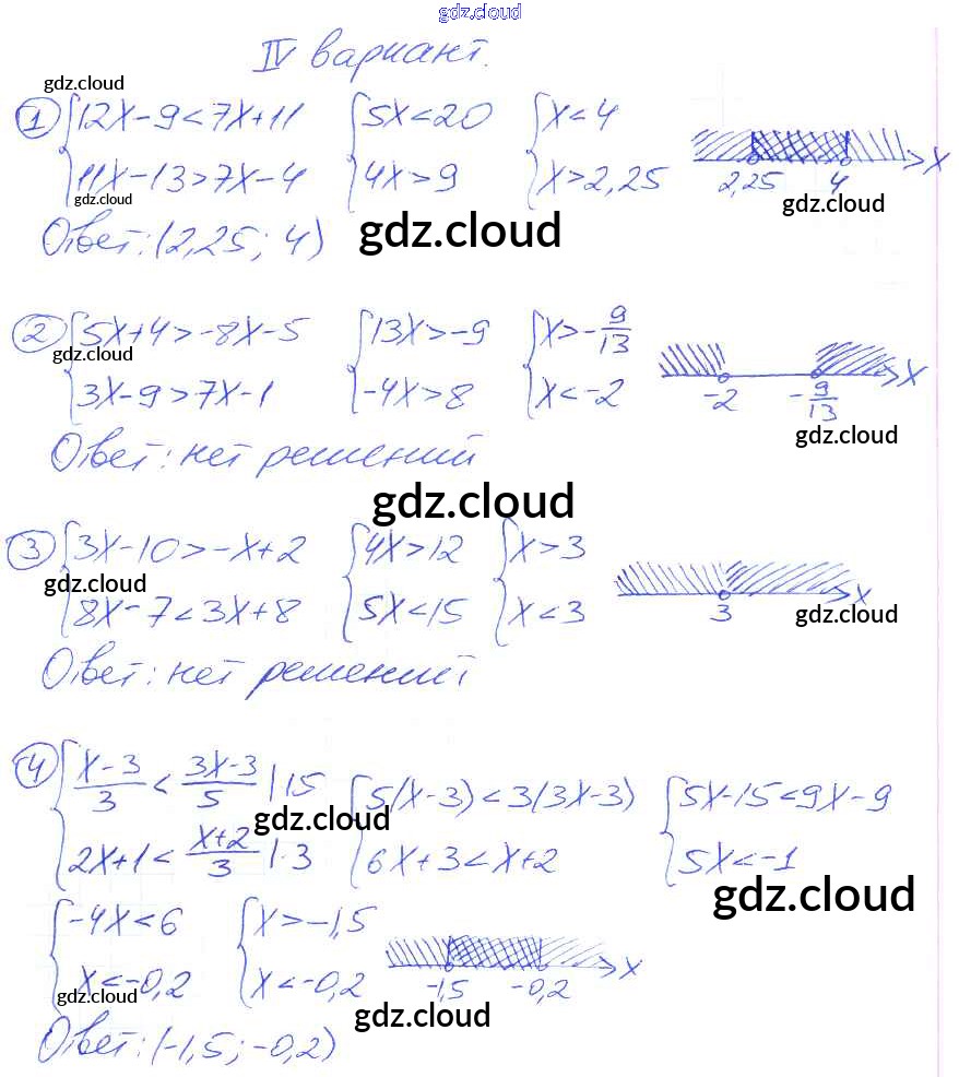 СР №3. Системы линейных неравенств с одним неизвестным Самостоятельные работы по Алгебре 9 класс Дидактические материалы Потапов МГУ - школе Просвещение