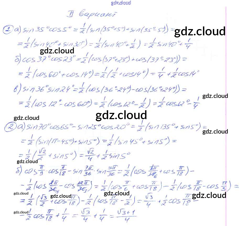 СР №30. Произведения синусов и косинусов Самостоятельные работы по Алгебре 9 класс Дидактические материалы Потапов МГУ - школе Просвещение