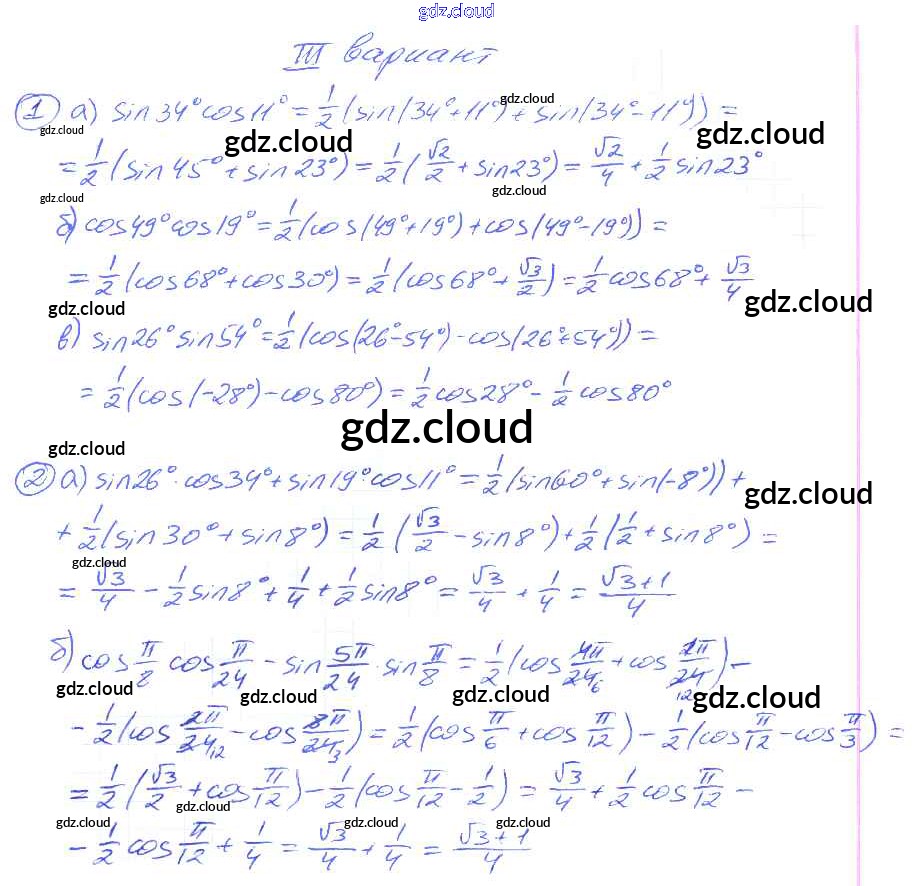 СР №30. Произведения синусов и косинусов Самостоятельные работы по Алгебре 9 класс Дидактические материалы Потапов МГУ - школе Просвещение