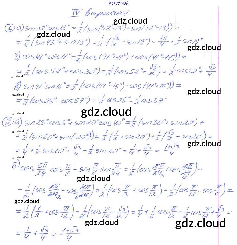 СР №30. Произведения синусов и косинусов Самостоятельные работы по Алгебре 9 класс Дидактические материалы Потапов МГУ - школе Просвещение