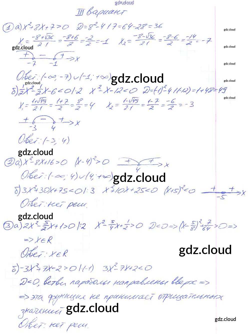 Ответ на задание вариант 3 Дидактические материалы Алгебра за 9 (девятый) класс Потапов, Шевкин МГУ - школе 2010