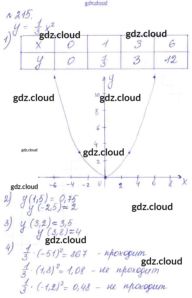 Ответ на задание 215 Учебник Алгебра за 9 (девятый) класс Дорофеев, Суворова, Бунимович, Кузнецова, Минаева, Рослова 2016, 2019