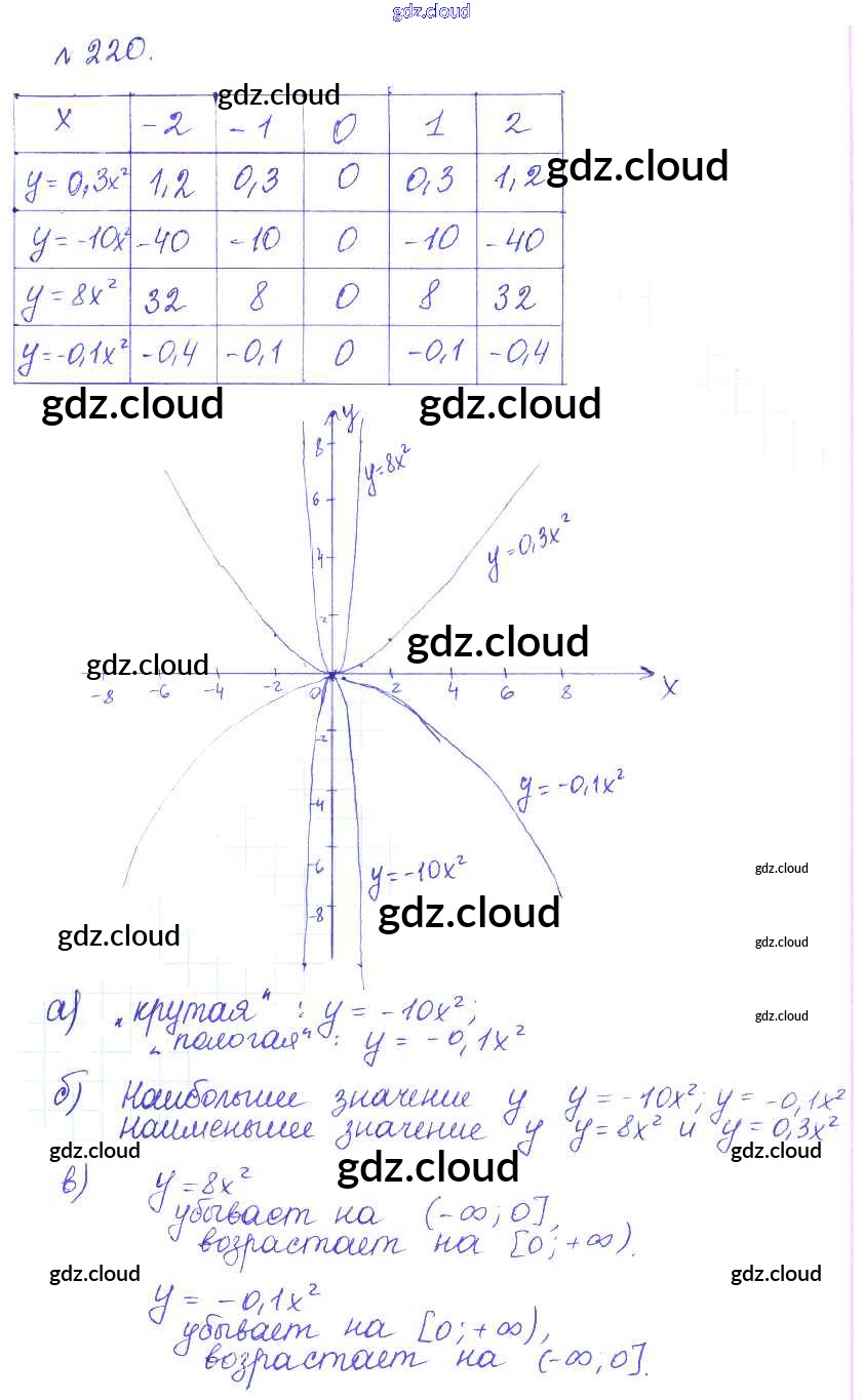 Ответ на задание 220 Учебник Алгебра за 9 (девятый) класс Дорофеев, Суворова, Бунимович, Кузнецова, Минаева, Рослова 2016, 2019