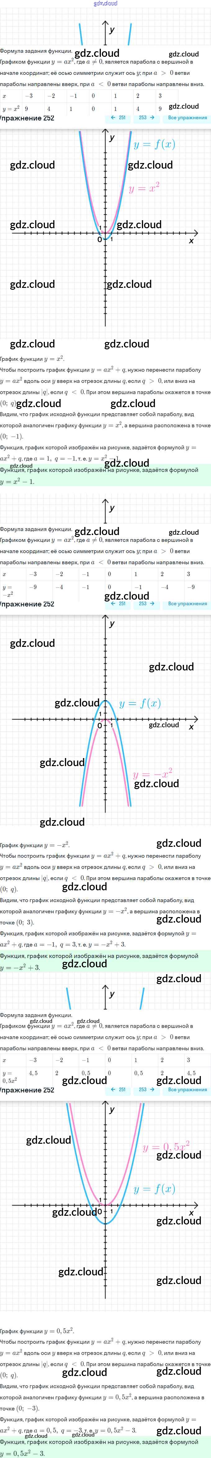 Ответ на задание 252 Учебник Алгебра за 9 (девятый) класс Дорофеев, Суворова, Бунимович, Кузнецова, Минаева, Рослова 2016, 2019