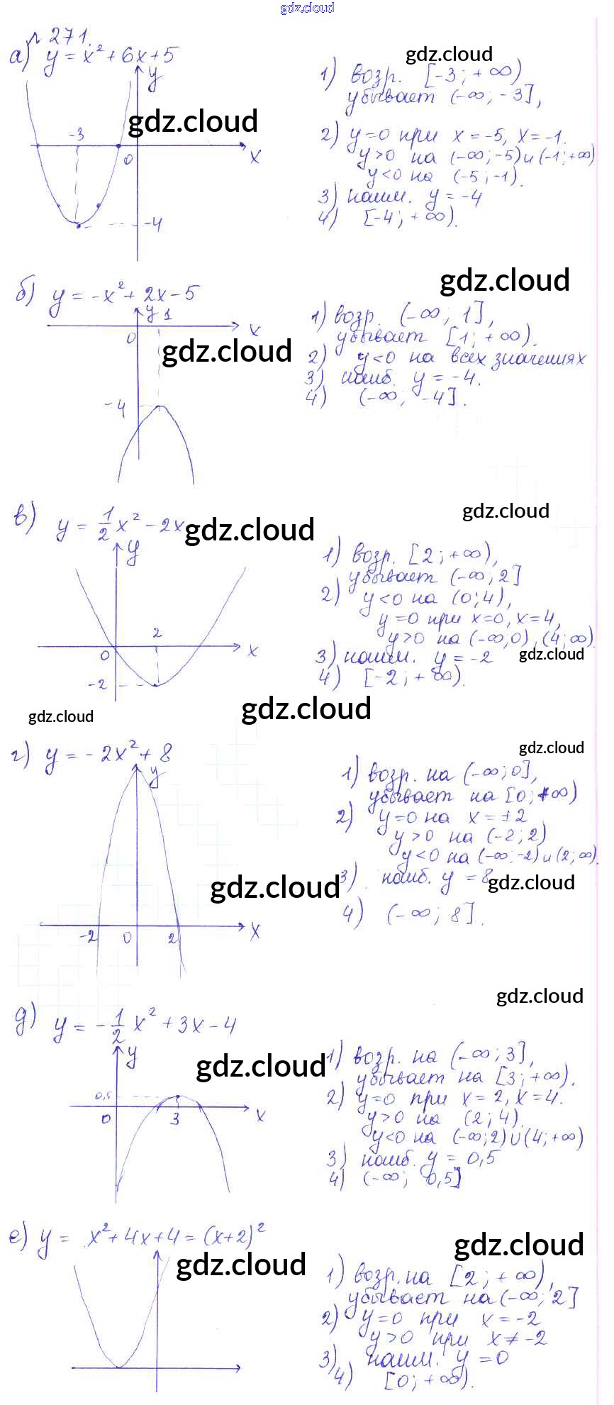 Ответ на задание 271 Учебник Алгебра за 9 (девятый) класс Дорофеев, Суворова, Бунимович, Кузнецова, Минаева, Рослова 2016, 2019