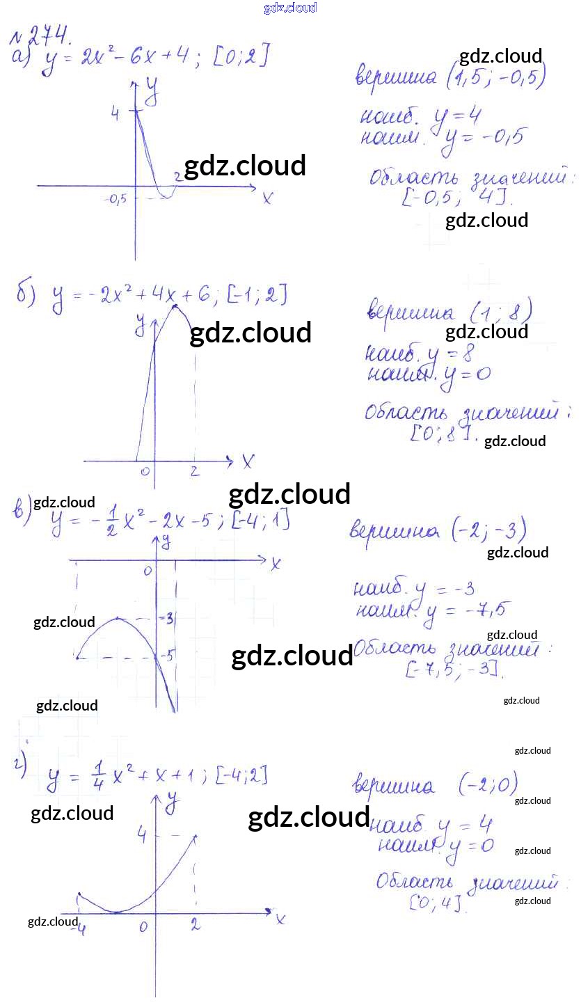 Ответ на задание 274 Учебник Алгебра за 9 (девятый) класс Дорофеев, Суворова, Бунимович, Кузнецова, Минаева, Рослова 2016, 2019