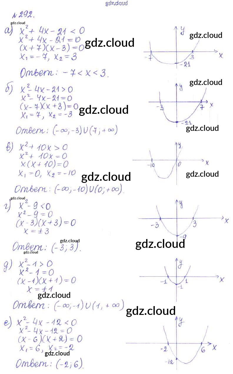 Ответ на задание 292 Учебник Алгебра за 9 (девятый) класс Дорофеев, Суворова, Бунимович, Кузнецова, Минаева, Рослова 2016, 2019