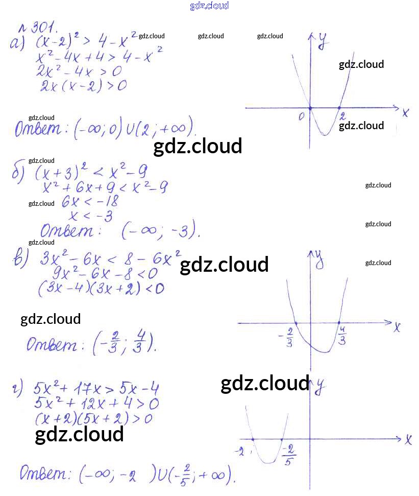 Ответ на задание 301 Учебник Алгебра за 9 (девятый) класс Дорофеев, Суворова, Бунимович, Кузнецова, Минаева, Рослова 2016, 2019
