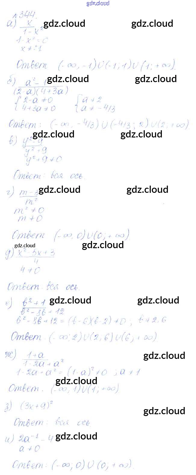 Ответ на задание 344 Учебник Алгебра за 9 (девятый) класс Дорофеев, Суворова, Бунимович, Кузнецова, Минаева, Рослова 2016, 2019