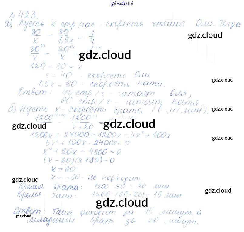 Ответ на задание 423 Учебник Алгебра за 9 (девятый) класс Дорофеев, Суворова, Бунимович, Кузнецова, Минаева, Рослова 2016, 2019