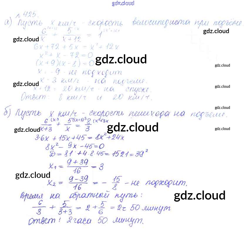Ответ на задание 425 Учебник Алгебра за 9 (девятый) класс Дорофеев, Суворова, Бунимович, Кузнецова, Минаева, Рослова 2016, 2019
