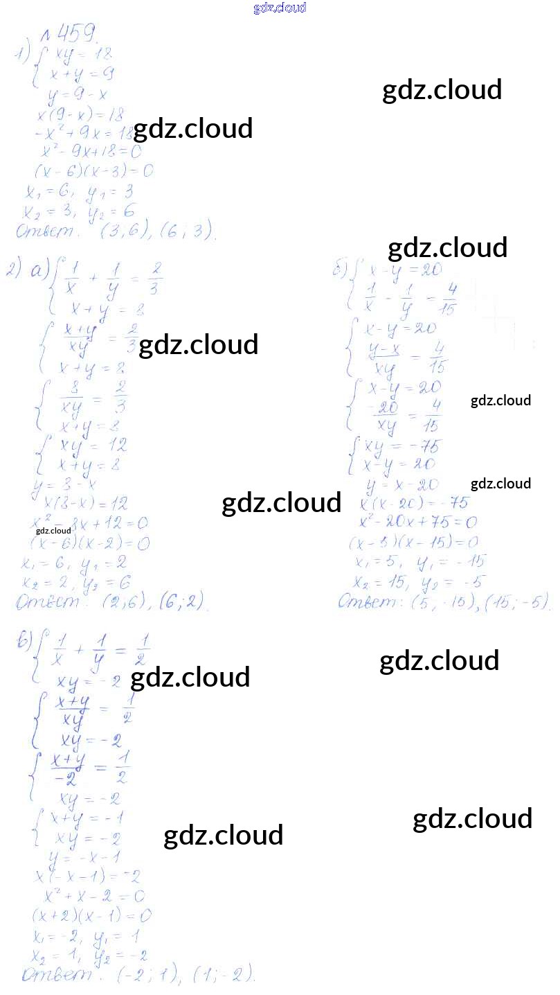 Ответ на задание 459 Учебник Алгебра за 9 (девятый) класс Дорофеев, Суворова, Бунимович, Кузнецова, Минаева, Рослова 2016, 2019