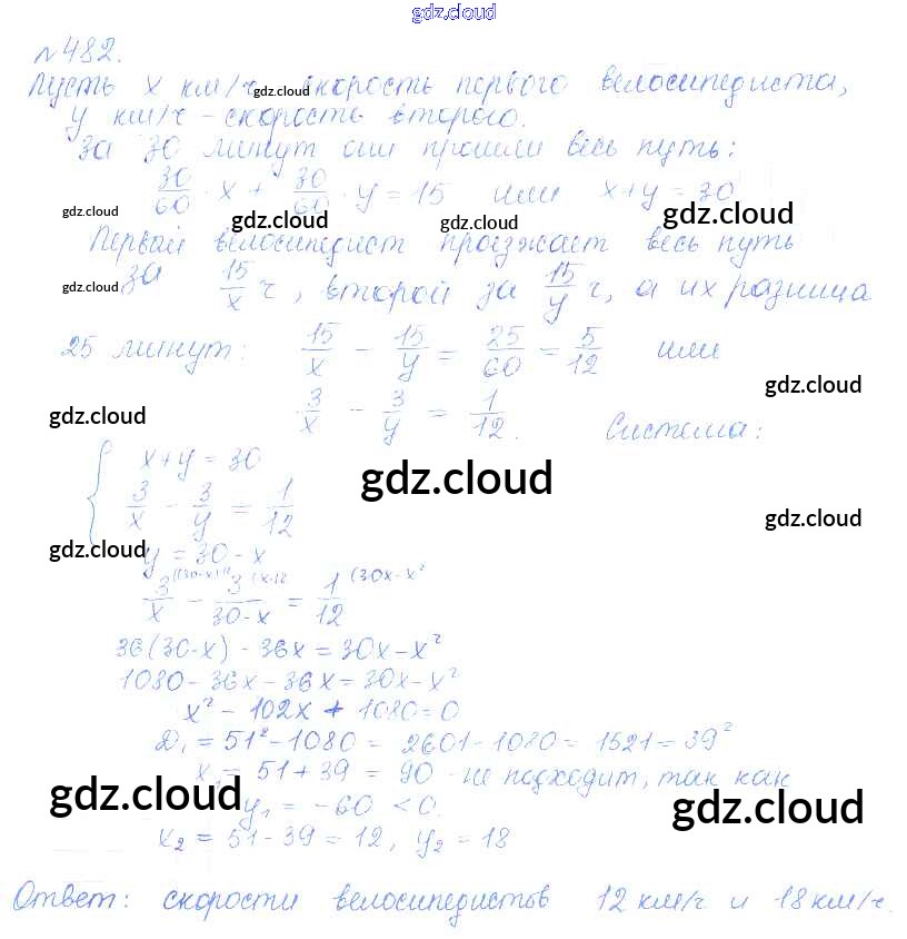 Ответ на задание 482 Учебник Алгебра за 9 (девятый) класс Дорофеев, Суворова, Бунимович, Кузнецова, Минаева, Рослова 2016, 2019