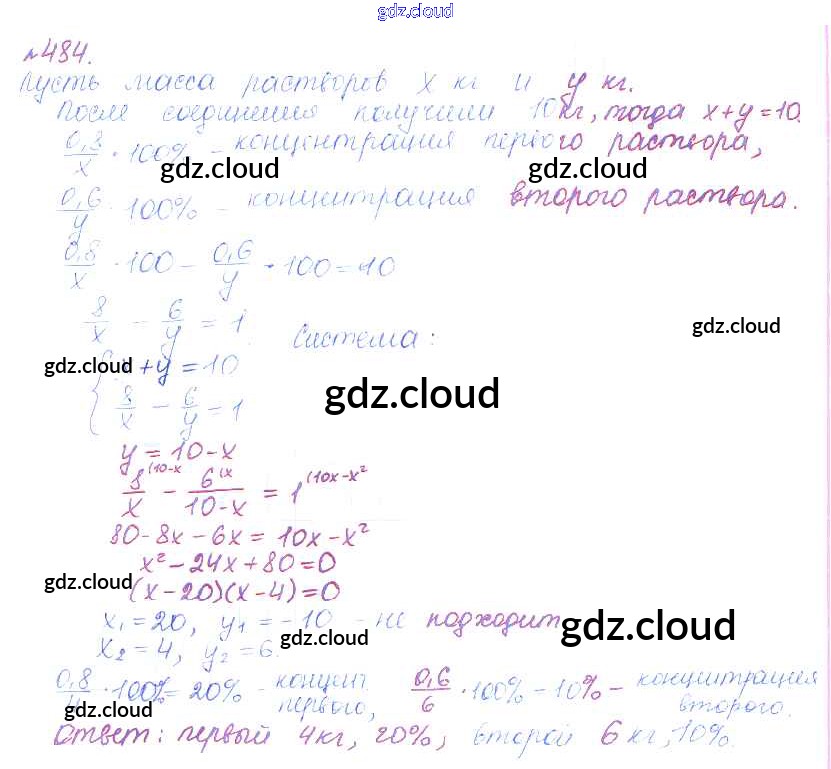 Ответ на задание 484 Учебник Алгебра за 9 (девятый) класс Дорофеев, Суворова, Бунимович, Кузнецова, Минаева, Рослова 2016, 2019