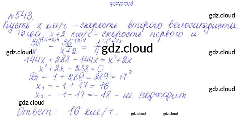 Ответ на задание 543 Учебник Алгебра за 9 (девятый) класс Дорофеев, Суворова, Бунимович, Кузнецова, Минаева, Рослова 2016, 2019