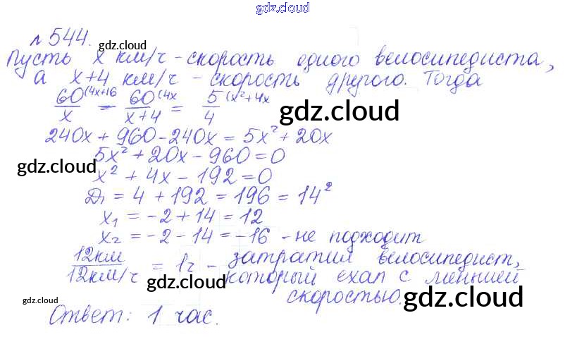 Ответ на задание 544 Учебник Алгебра за 9 (девятый) класс Дорофеев, Суворова, Бунимович, Кузнецова, Минаева, Рослова 2016, 2019