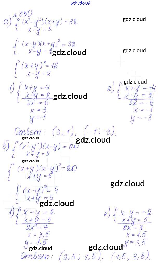 Ответ на задание 550 Учебник Алгебра за 9 (девятый) класс Дорофеев, Суворова, Бунимович, Кузнецова, Минаева, Рослова 2016, 2019
