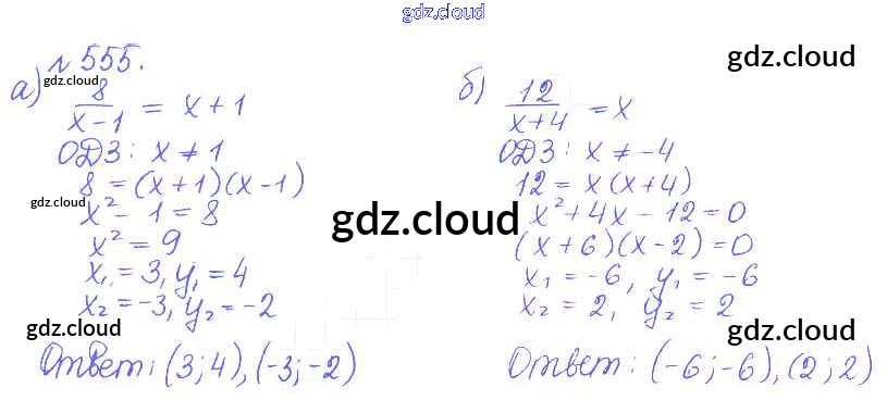 Ответ на задание 555 Учебник Алгебра за 9 (девятый) класс Дорофеев, Суворова, Бунимович, Кузнецова, Минаева, Рослова 2016, 2019