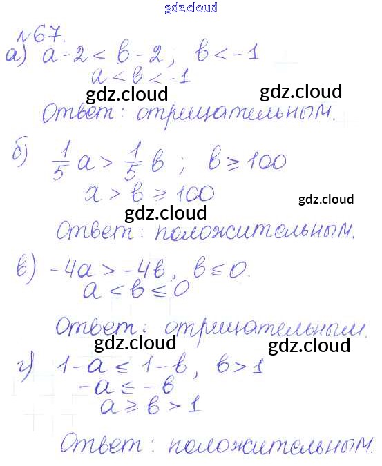 Ответ на задание 67 Учебник Алгебра за 9 (девятый) класс Дорофеев, Суворова, Бунимович, Кузнецова, Минаева, Рослова 2016, 2019