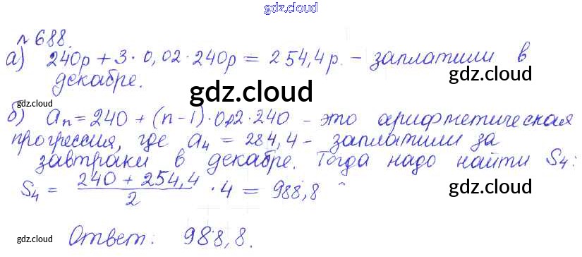 Ответ на задание 688 Учебник Алгебра за 9 (девятый) класс Дорофеев, Суворова, Бунимович, Кузнецова, Минаева, Рослова 2016, 2019