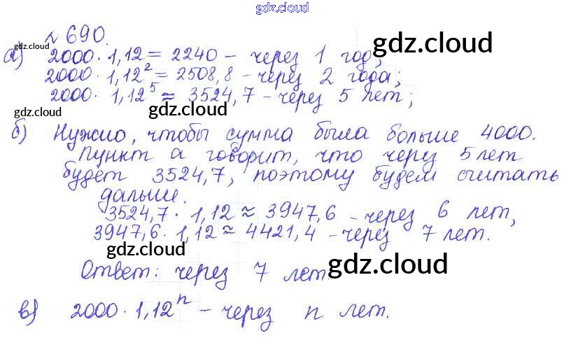 Ответ на задание 690 Учебник Алгебра за 9 (девятый) класс Дорофеев, Суворова, Бунимович, Кузнецова, Минаева, Рослова 2016, 2019
