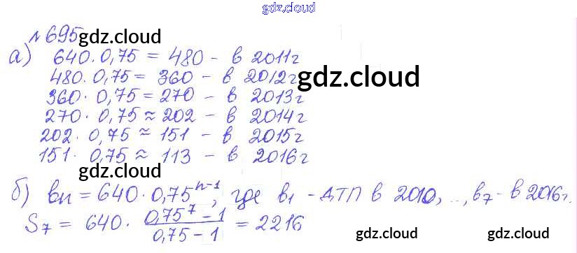 Ответ на задание 695 Учебник Алгебра за 9 (девятый) класс Дорофеев, Суворова, Бунимович, Кузнецова, Минаева, Рослова 2016, 2019