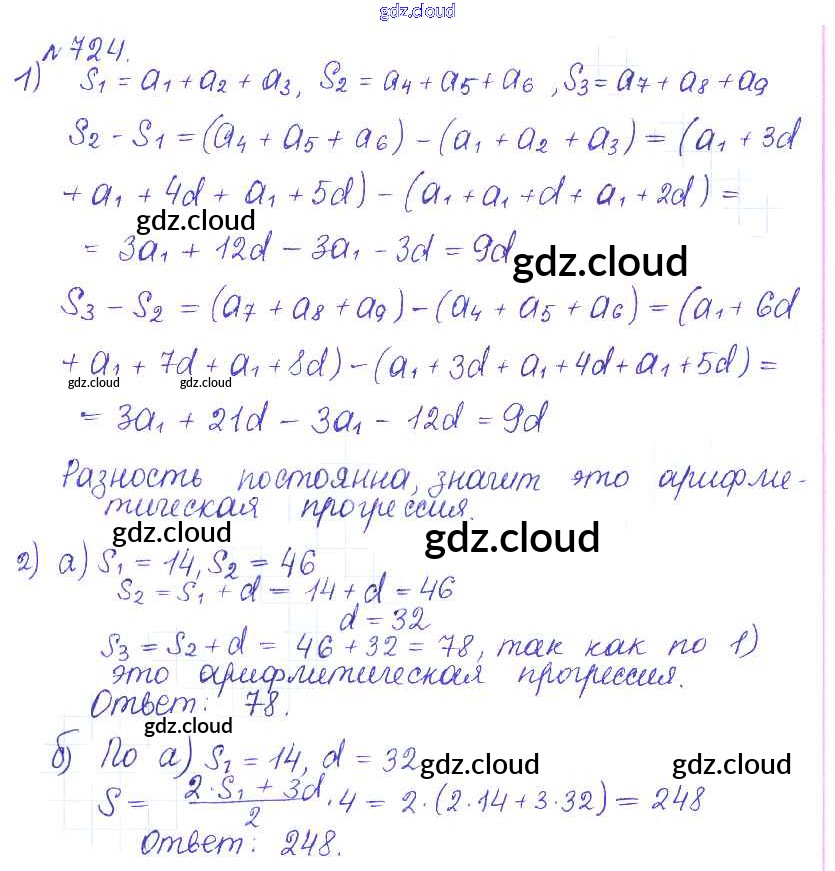 Ответ на задание 724 Учебник Алгебра за 9 (девятый) класс Дорофеев, Суворова, Бунимович, Кузнецова, Минаева, Рослова 2016, 2019