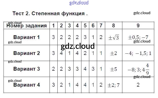 Ответ на задание Тест 2. Степенная функция Тематические тесты Алгебра за 9 (девятый) класс Дудницын, Кронгауз 2017 ФГОС онлайн и без номера телефона.