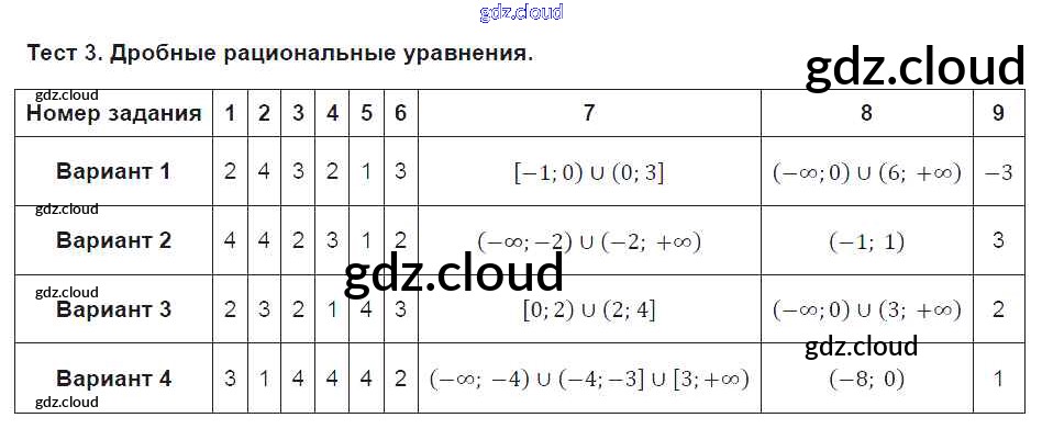 Ответ на задание Тест 3. Дробные рациональные уравнения Тематические тесты Алгебра за 9 (девятый) класс Дудницын, Кронгауз 2017 ФГОС онлайн и без номера телефона.