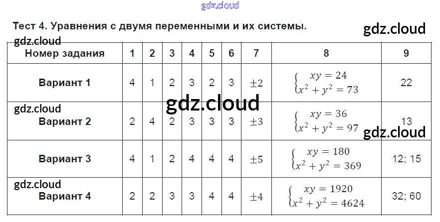 Ответ на задание Тест 4. Уравнения с двумя переменными и их системы Тематические тесты Алгебра за 9 (девятый) класс Дудницын, Кронгауз 2017 ФГОС онлайн и без номера телефона.