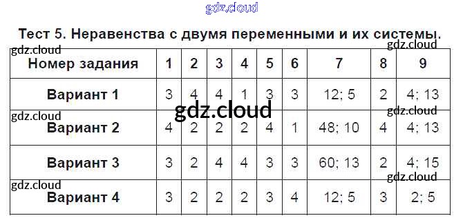 Ответ на задание Тест 5. Неравенства с двумя переменными и их системы Тематические тесты Алгебра за 9 (девятый) класс Дудницын, Кронгауз 2017