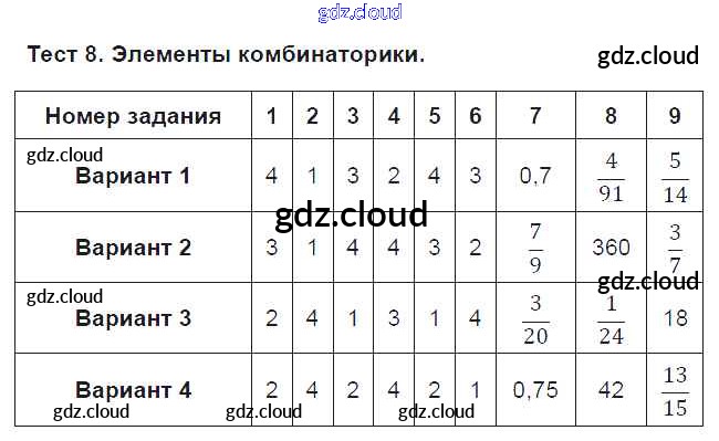 Ответ на задание Тест 8. Элементы комбинаторики Тематические тесты Алгебра за 9 (девятый) класс Дудницын, Кронгауз 2017 ФГОС онлайн и без номера телефона.