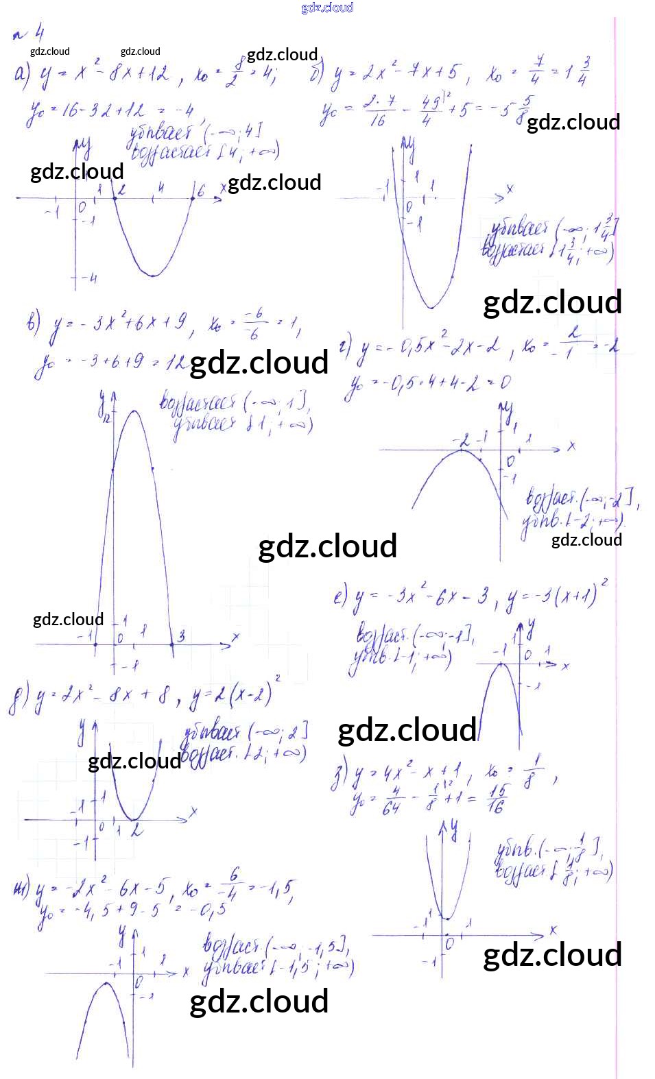 О-13. График функции y = ax2 + bx + c Ответы к Обучающим работам по Алгебре 9 класс Дидактические материалы Евстафьева Просвещение