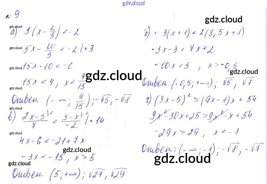 О-3. Решение неравенств Ответы к Обучающим работам по Алгебре 9 класс Дидактические материалы Евстафьева Просвещение