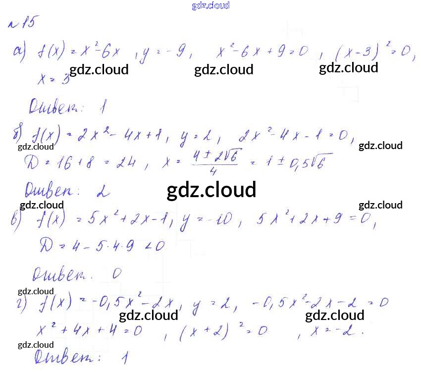 Ответ на задание 15 Дидактические материалы Алгебра за 9 (девятый) класс Евстафьева, Карп 2017