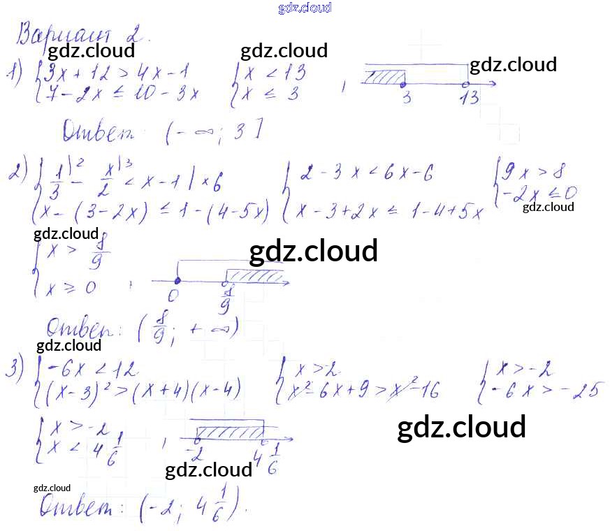 П-13. Решение систем неравенств Ответы к Проверочным работам по Алгебре 9 класс Дидактические материалы Евстафьева Просвещение