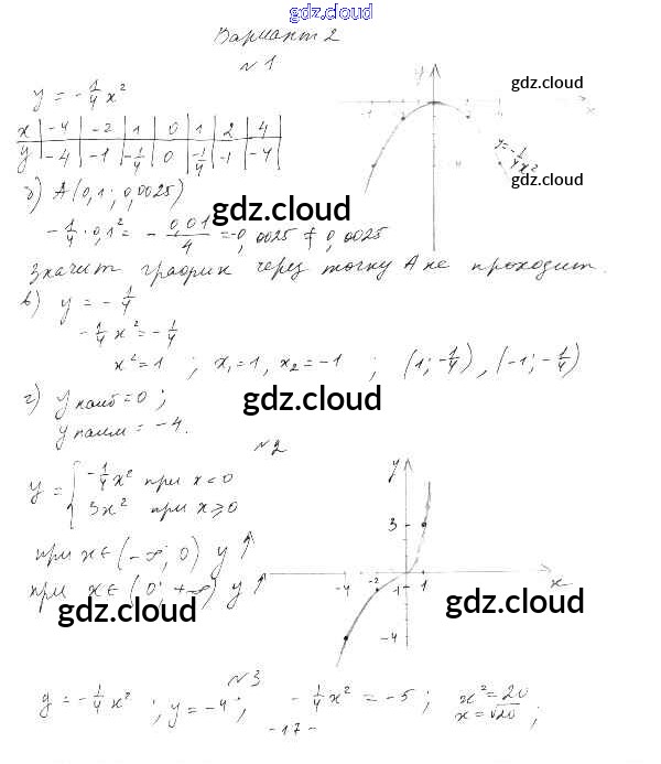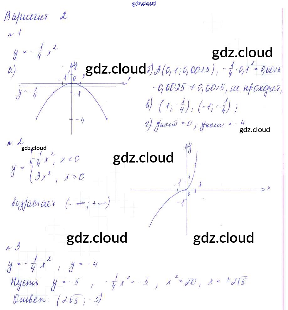 П-19. График и свойства функции y = ax2 Ответы к Проверочным работам по Алгебре 9 класс Дидактические материалы Евстафьева Просвещение