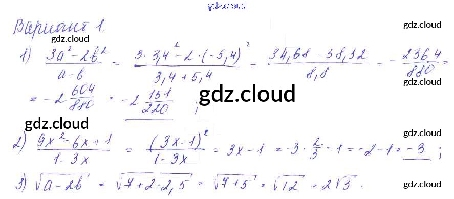 Ответ на задание Вариант 1 Дидактические материалы Алгебра за 9 (девятый) класс Евстафьева, Карп 2017