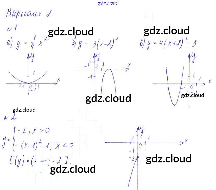 П-20. Сдвиг графика функции y = ax2 вдоль осей координат Ответы к Проверочным работам по Алгебре 9 класс Дидактические материалы Евстафьева Просвещение