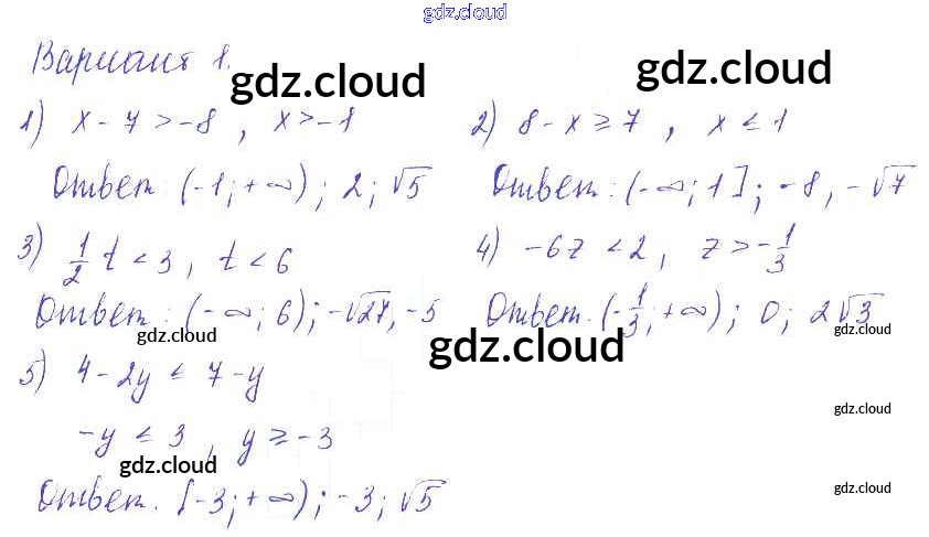 П-8. Решение линейных неравенств Ответы к Проверочным работам по Алгебре 9 класс Дидактические материалы Евстафьева Просвещение