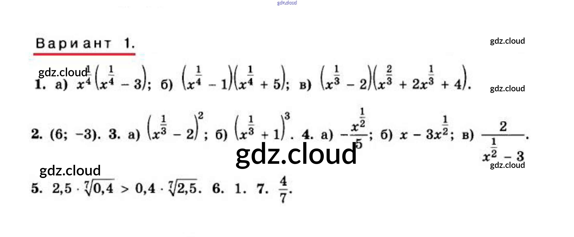 Ответы. Контрольная работа 5 (Варианты) по Алгебре 9 класс Дидактические материалы Феоктистов Мнемозина