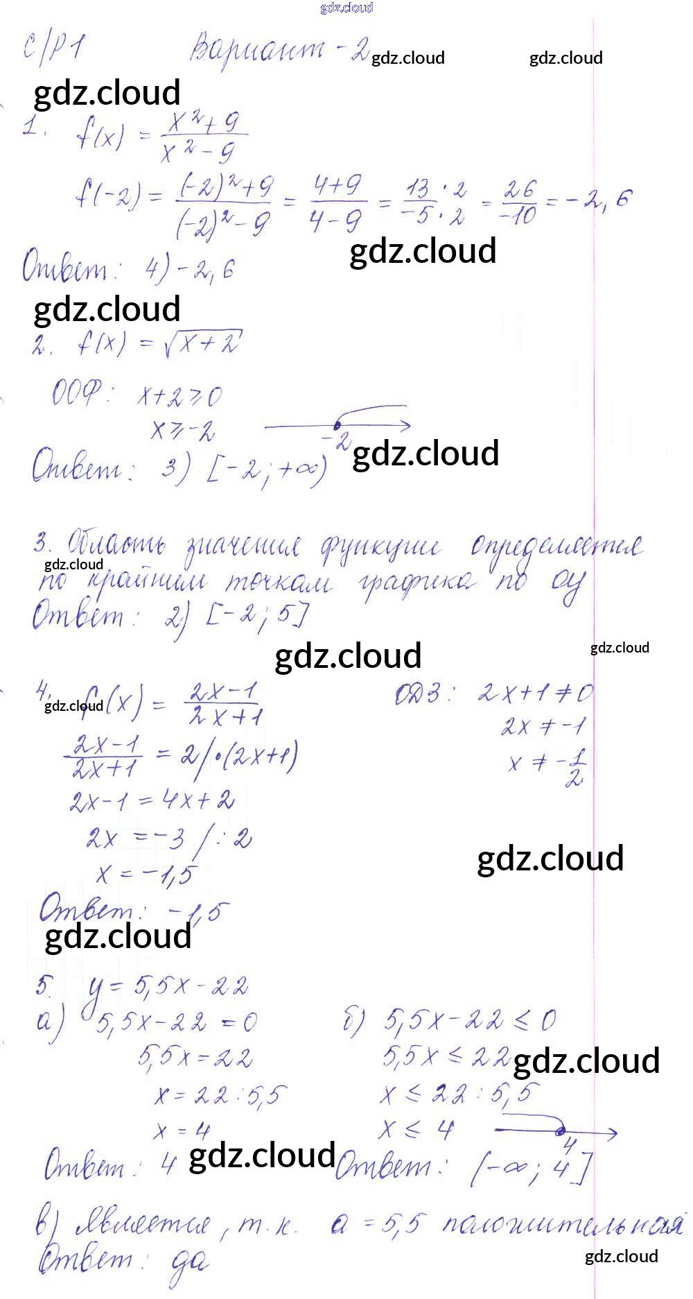 СР-1. Функции и их свойства Ответы к Самостоятельным работам по Алгебре 9 класс Самостоятельные и контрольные работы Глазков УМК Экзамен