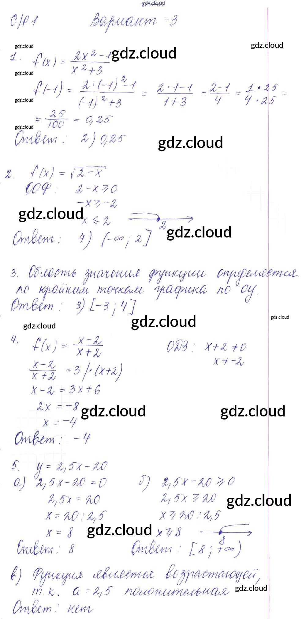 СР-1. Функции и их свойства Ответы к Самостоятельным работам по Алгебре 9 класс Самостоятельные и контрольные работы Глазков УМК Экзамен