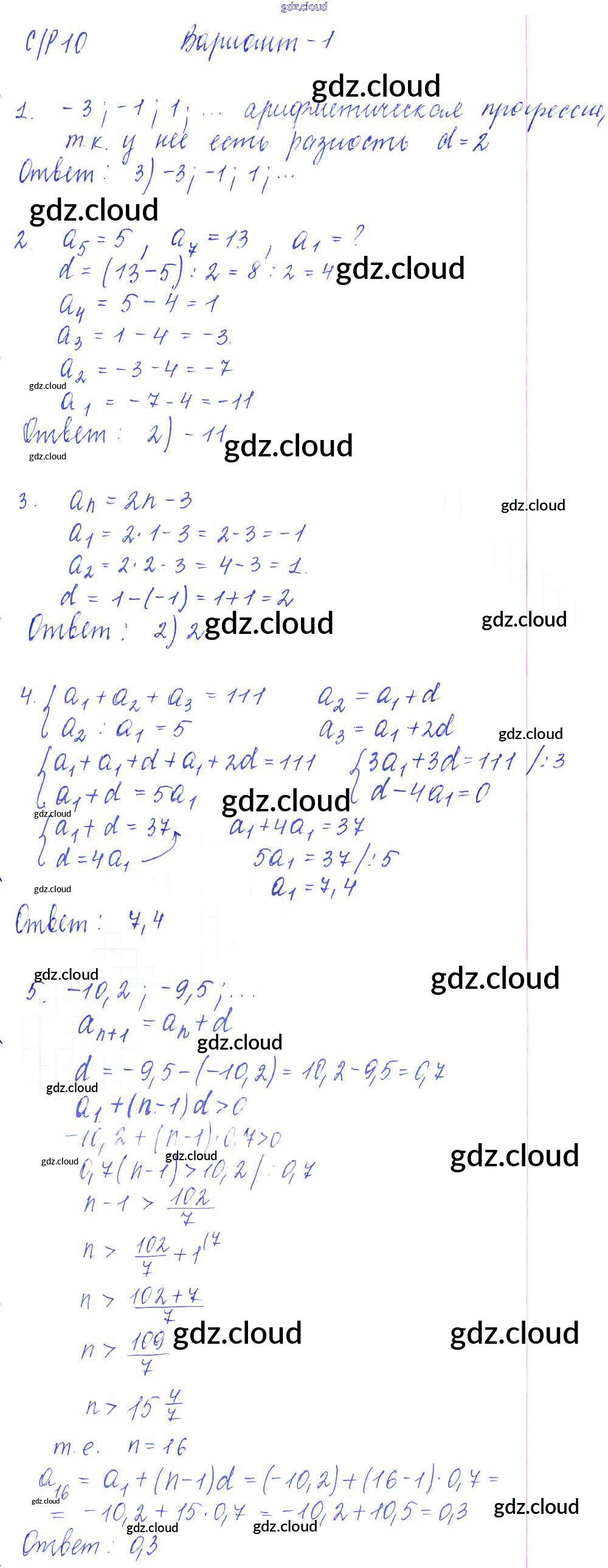 СР-10. Арифметическая прогрессия Ответы к Самостоятельным работам по Алгебре 9 класс Самостоятельные и контрольные работы Глазков УМК Экзамен