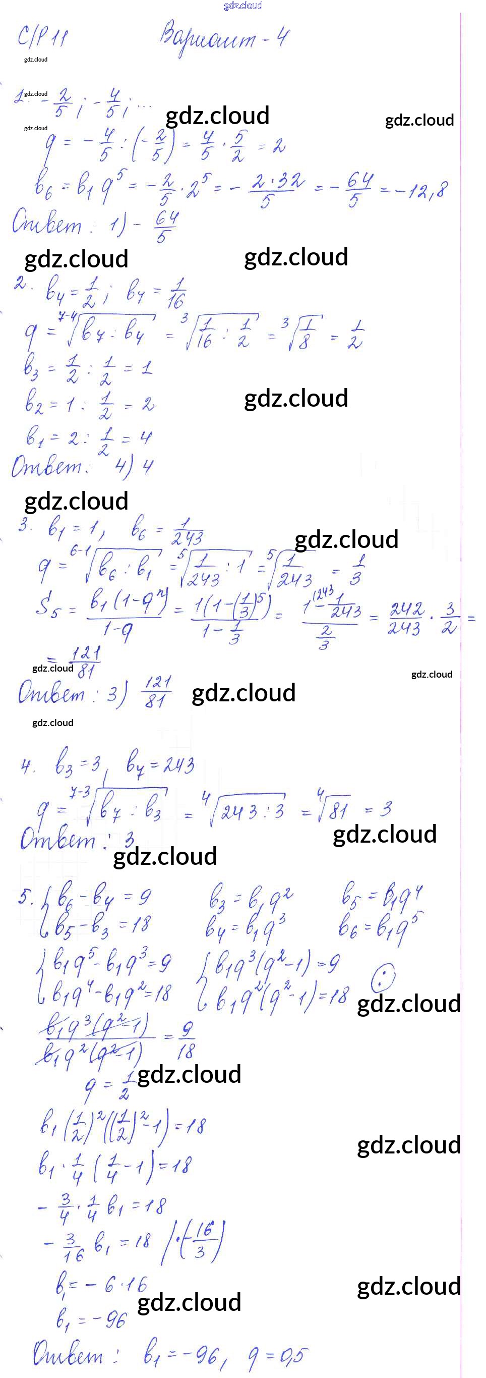 СР-11. Геометрическая прогрессия Ответы к Самостоятельным работам по Алгебре 9 класс Самостоятельные и контрольные работы Глазков УМК Экзамен